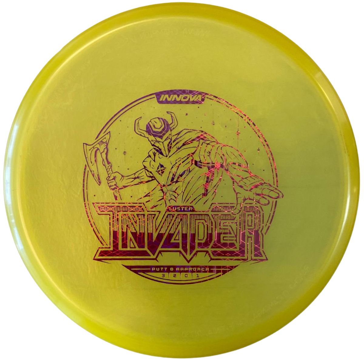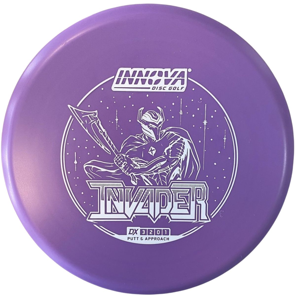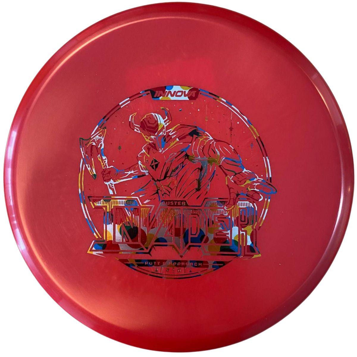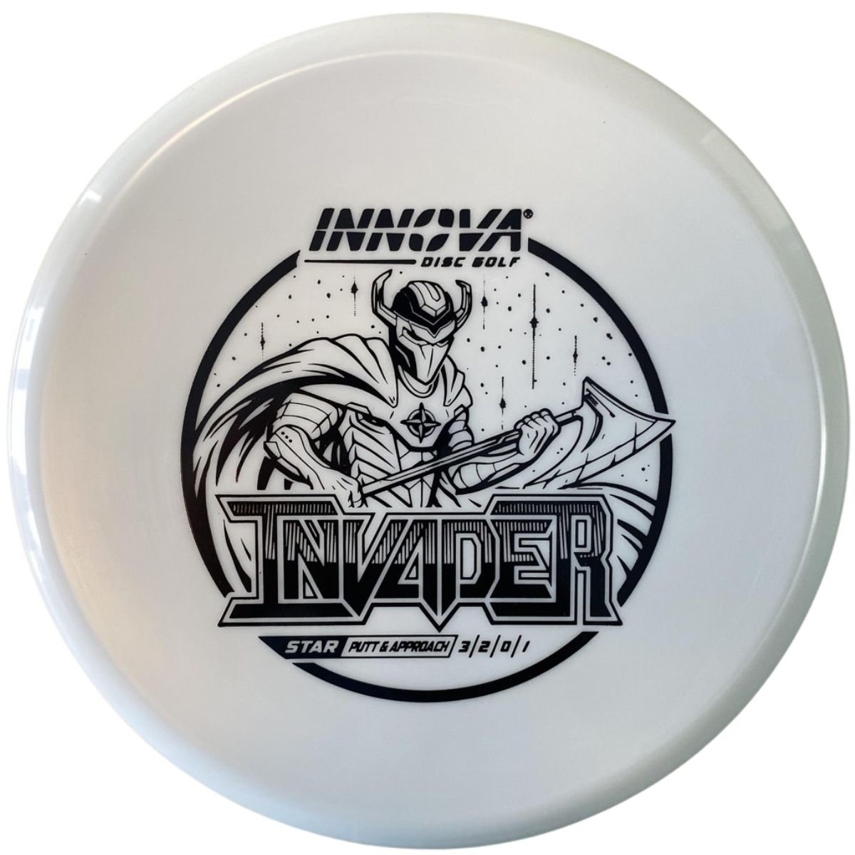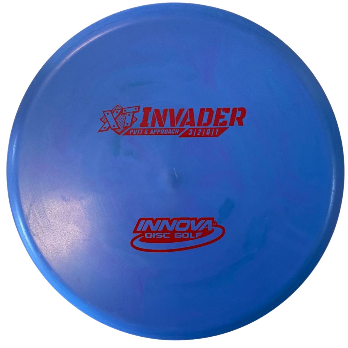 The Innova Invader is a flat-top, stable driving putter with a small bead. Excellent for forehand and backhand throws, especially in Luster or Halo plastic.