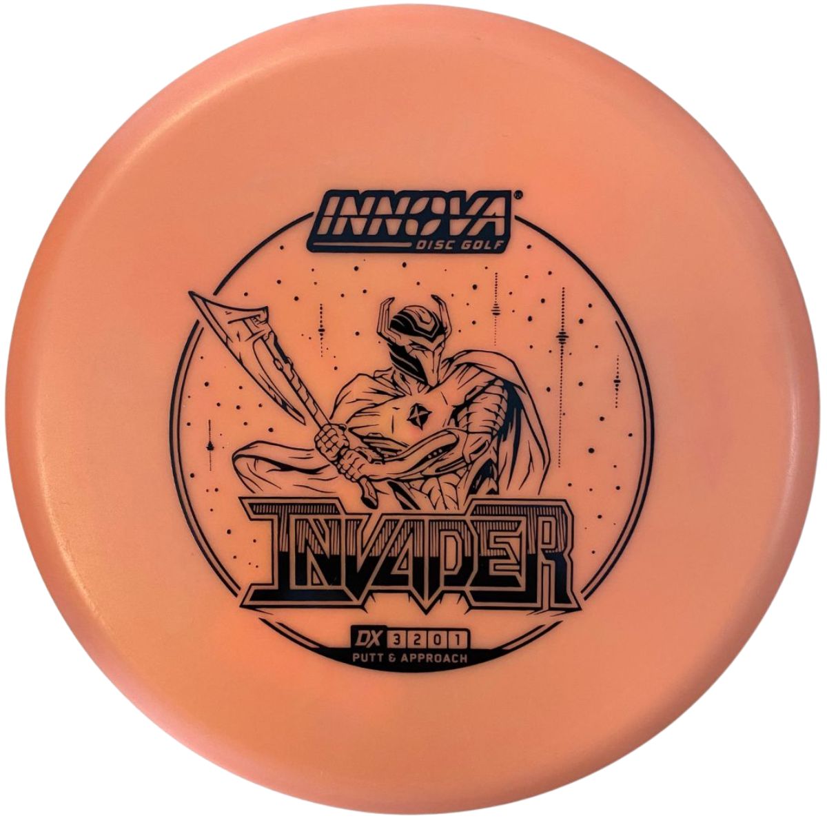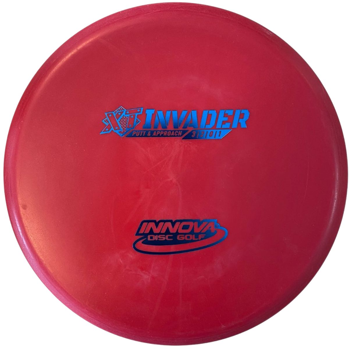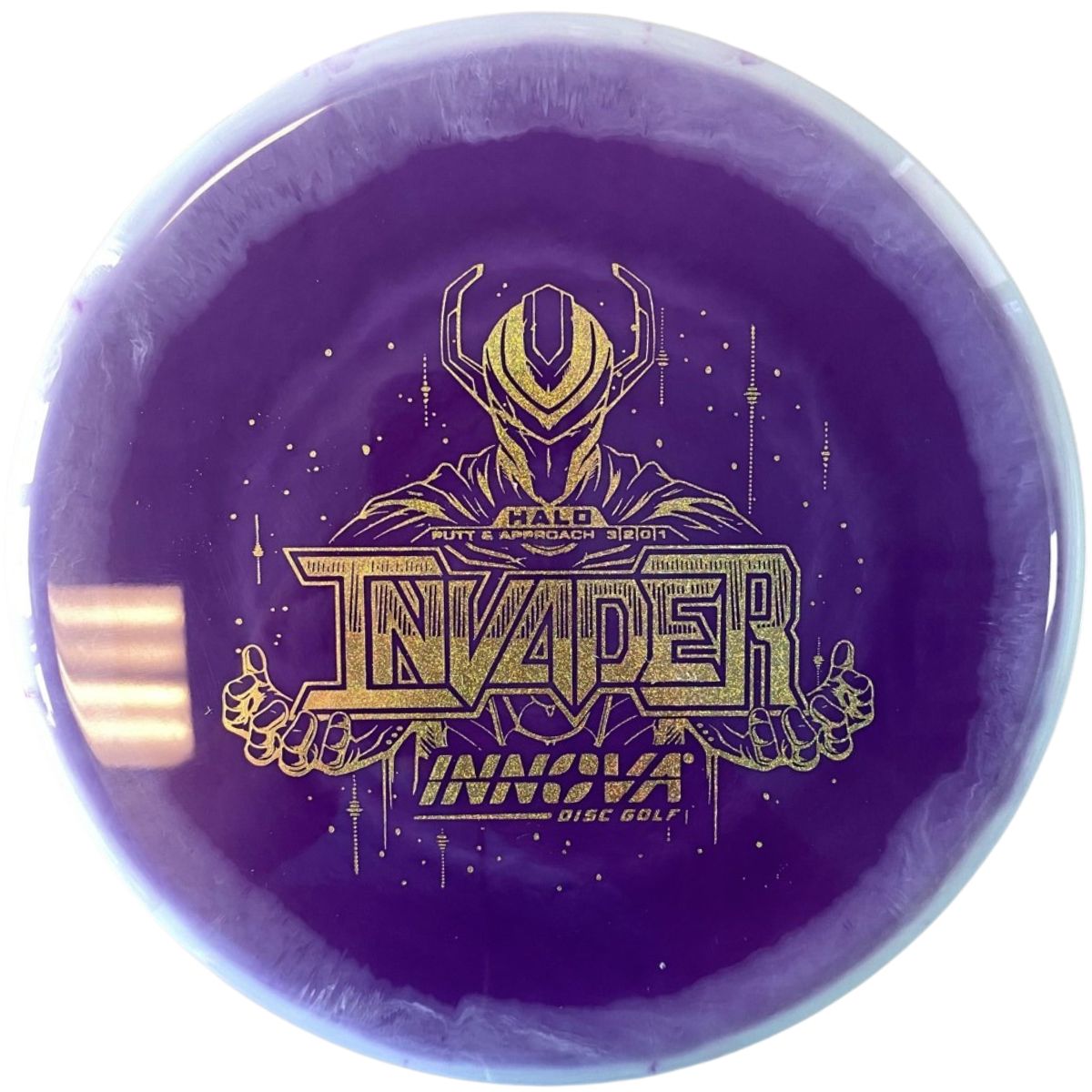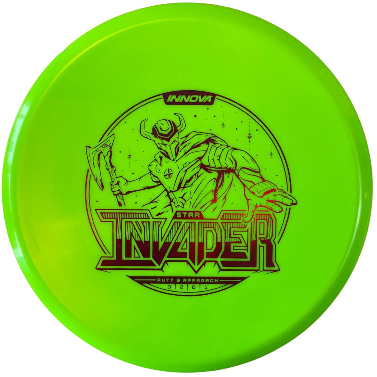 The Innova Invader is a flat-top, stable driving putter with a small bead. Excellent for forehand and backhand throws, especially in Luster or Halo plastic.